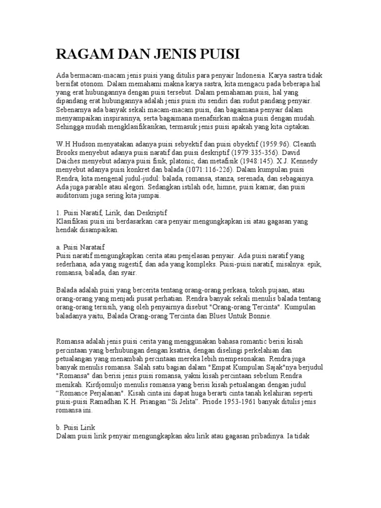 Jenis Jenis Puisi Yang Terdapat Pada Puisi Tersebut Puisi Naratif Balada Romansa Puisi Brainly Co Id