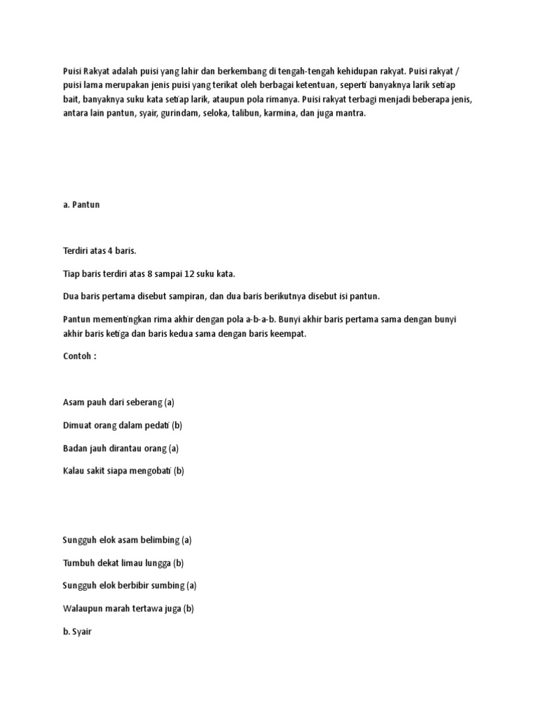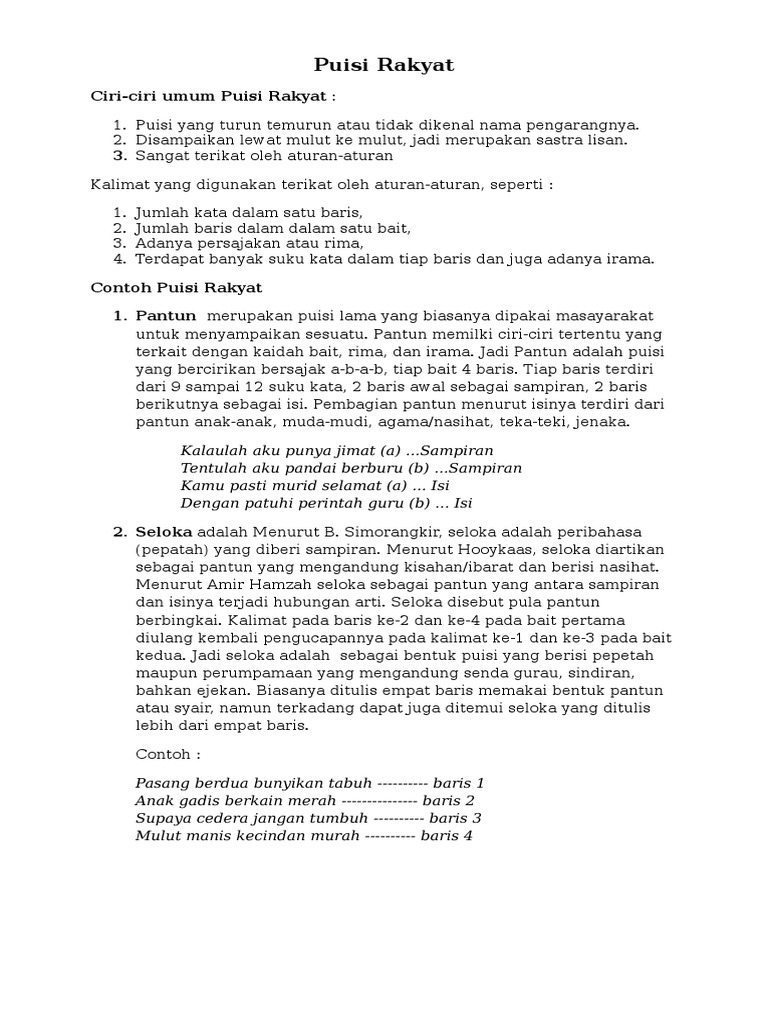 Contoh puisi rakyat 4 bait. Jadi apapun puisi tema cinta yang kita butuhkan mudah mudahan sudah tersedia di situs ini. Dan salah satu contoh puisi tersebut adalah teks puisi rakyat. Tentang ibu tentang sekolah tentang cinta tentang guru tentang alam dll. Sekolah memang menjadi inspirasi.