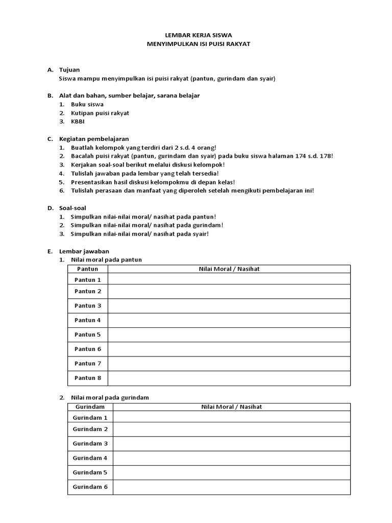 Dengan menggunakan kata kata yang indah yang diambil dari suatu tema yang dibahas oleh penilis puisi. Karena itu pendidikan merupakan suatu hal yang penting untuk di kuasai oleh setiap insan karena dengan pendidikan akan terbentuk. Kata kata dari teks puisi rakyat tersebut mempunyai makna yang kuat. Kemarin baru saja kita membuat puisi dengan judul sekolahku yang indah.