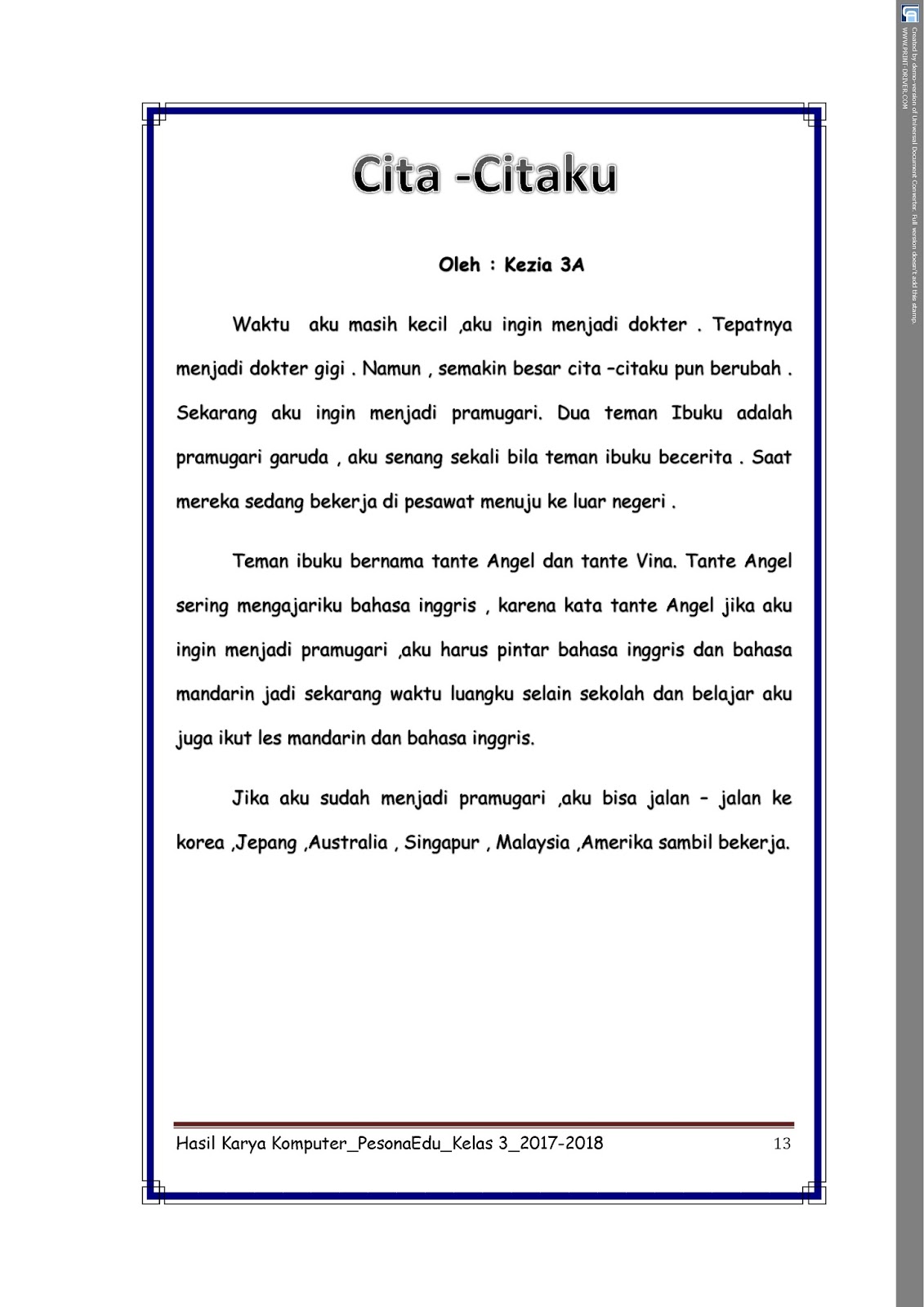 Nah buat sobat yang saat ini sedang mendapatkan tugas sekolah untuk membuat puisi namun masih bingung seperti apa puisi cita cita yang baik maka dapat menyimak beberapa puisi cita cita yang sudah kami siapkan dibawah ini. Contoh puisi cita cita. Inilah contoh puisi cita cita menjadi pramugari dan ulasan lain mengenai hal hal yang masih ada kaitannya dengan contoh puisi cita cita menjadi pramugari yang anda cari. Puisi lama syarat akan kaidah penulisan puisi ada yang bersajak aaaa memiliki irama dll.
